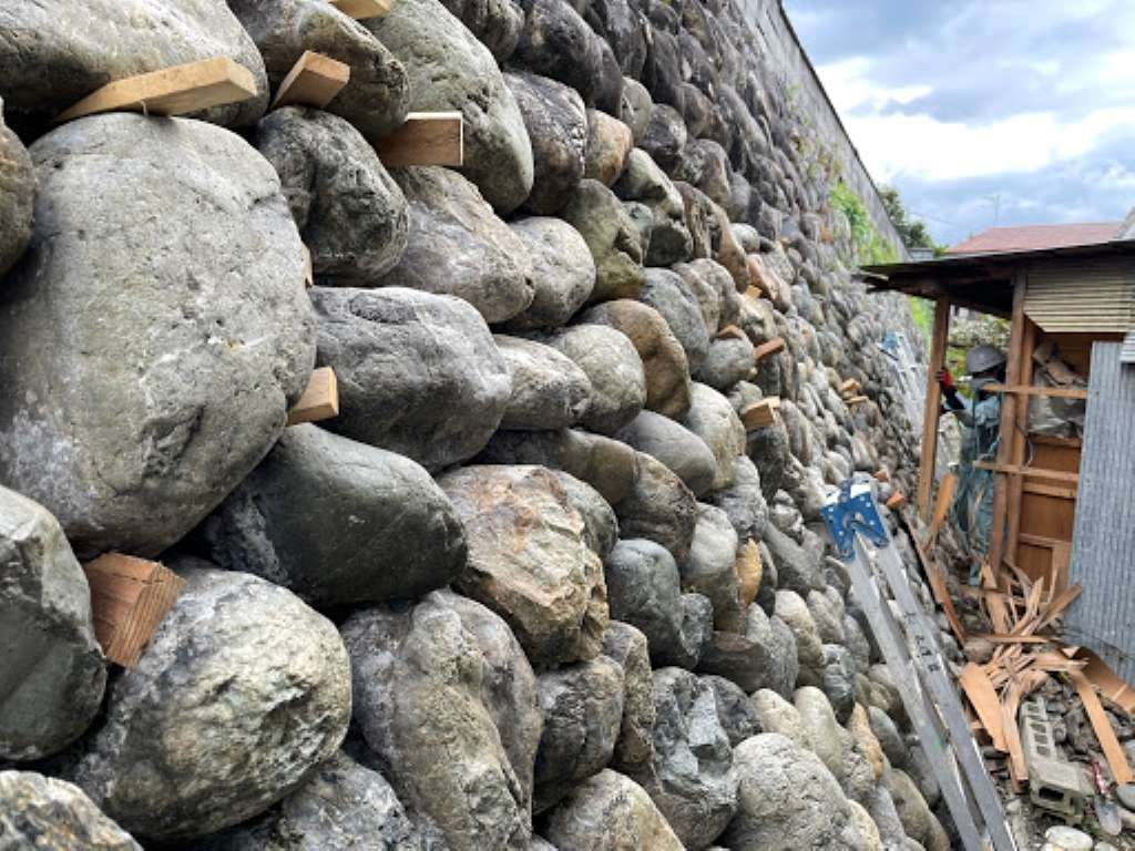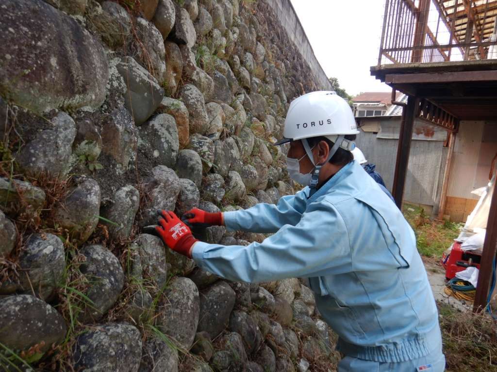 不安定な石積の崩落防止処置も行います。