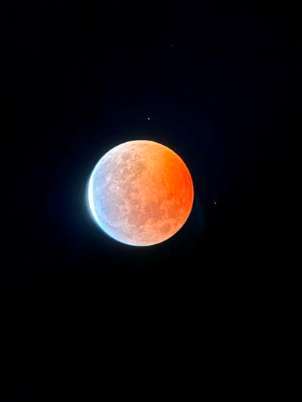 完全に天王星は月の裏側に、月食も終わり徐々に明るくなり