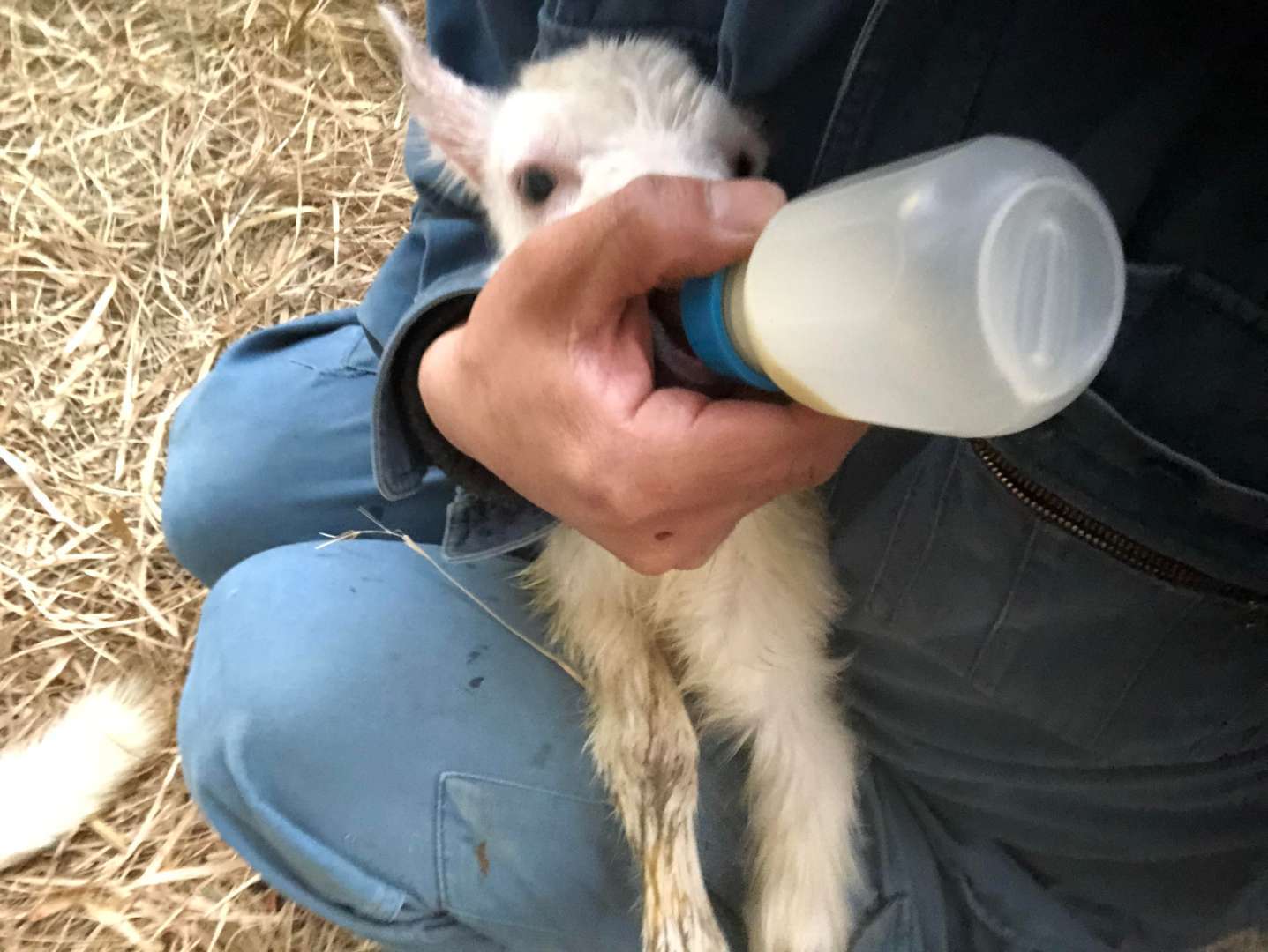 分娩後出来るだけ早く初乳を飲む様、赤ちゃんヤギを母ヤギさんに接触させ哺乳を促します。無理な場合は人口哺乳に切り替えます。