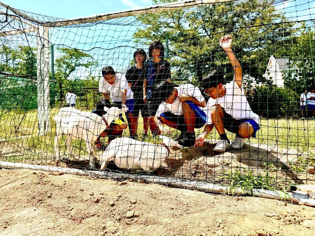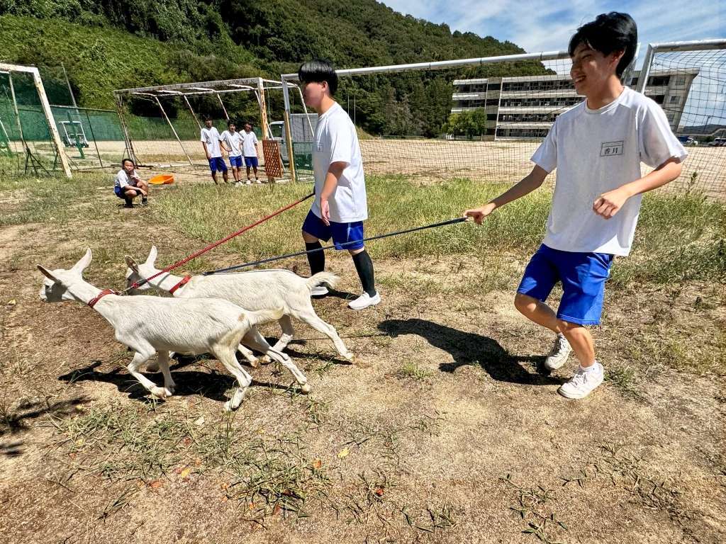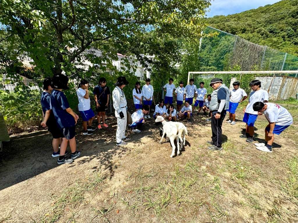 ある日、荘内中学校の校長先生から弊社にお電話を頂きました。『子供たちがヤギを飼育したいと希望しています。おとなしいヤギさんで、飼育のアドバイスもしてほしい』等々。そのお話を頂いたご縁で、