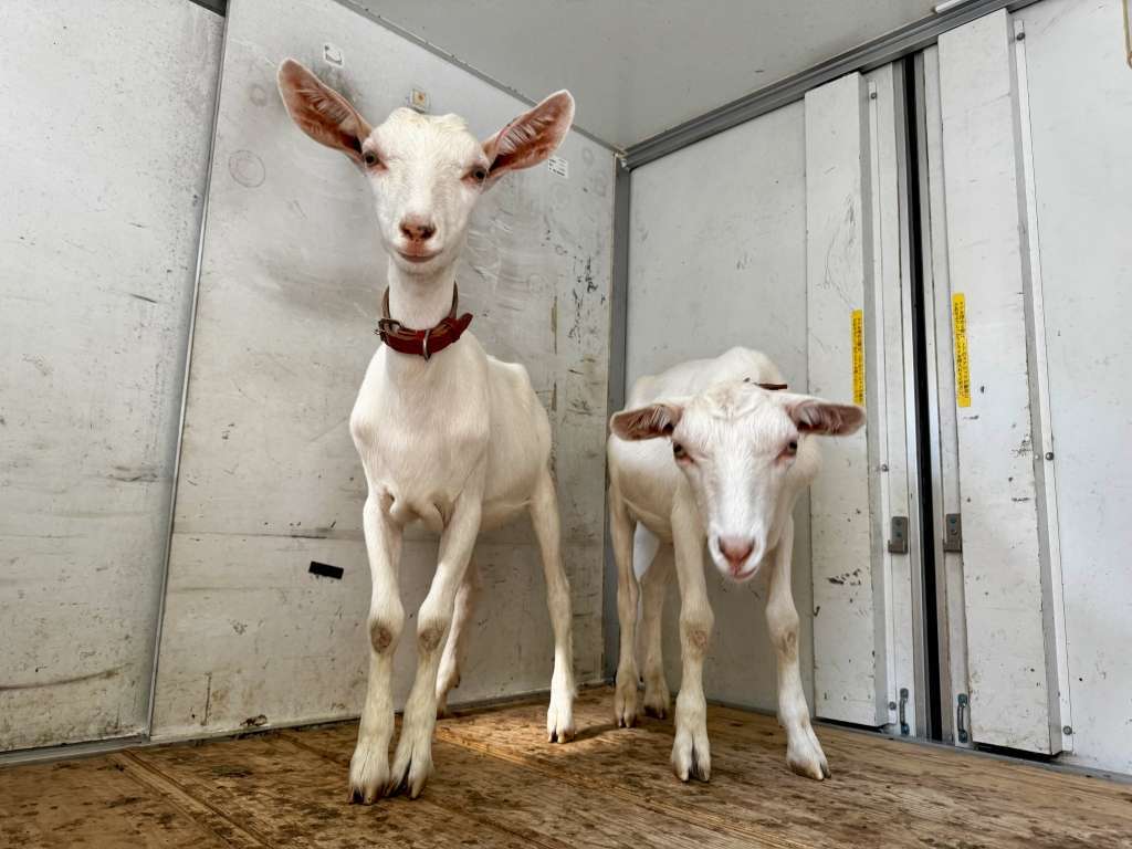 本日、(株)トーラスのヤギさん2頭を岡山県玉野市立荘内中学校に受け入れて頂きました。