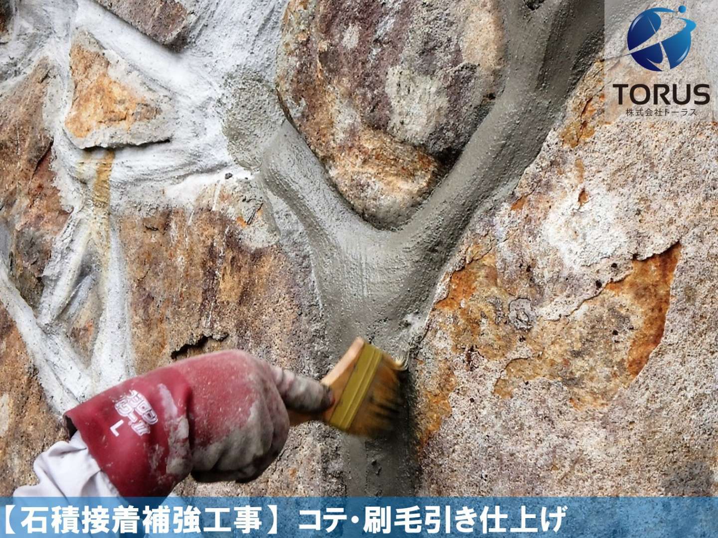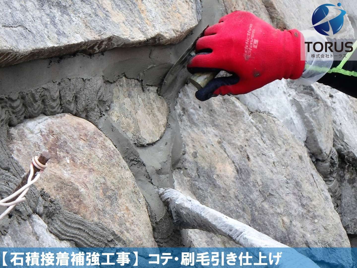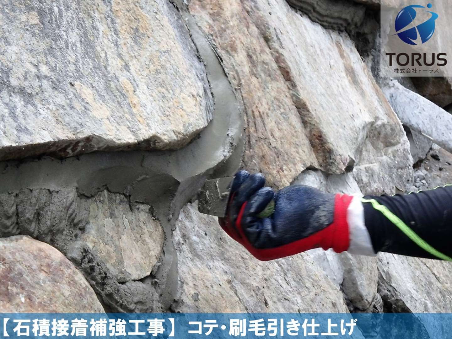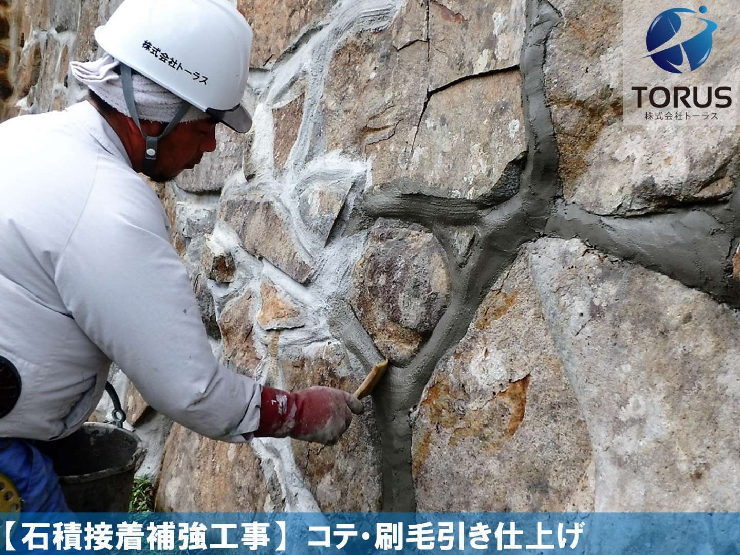株式会社トーラスでは石積の接着補強工事を行っています。
