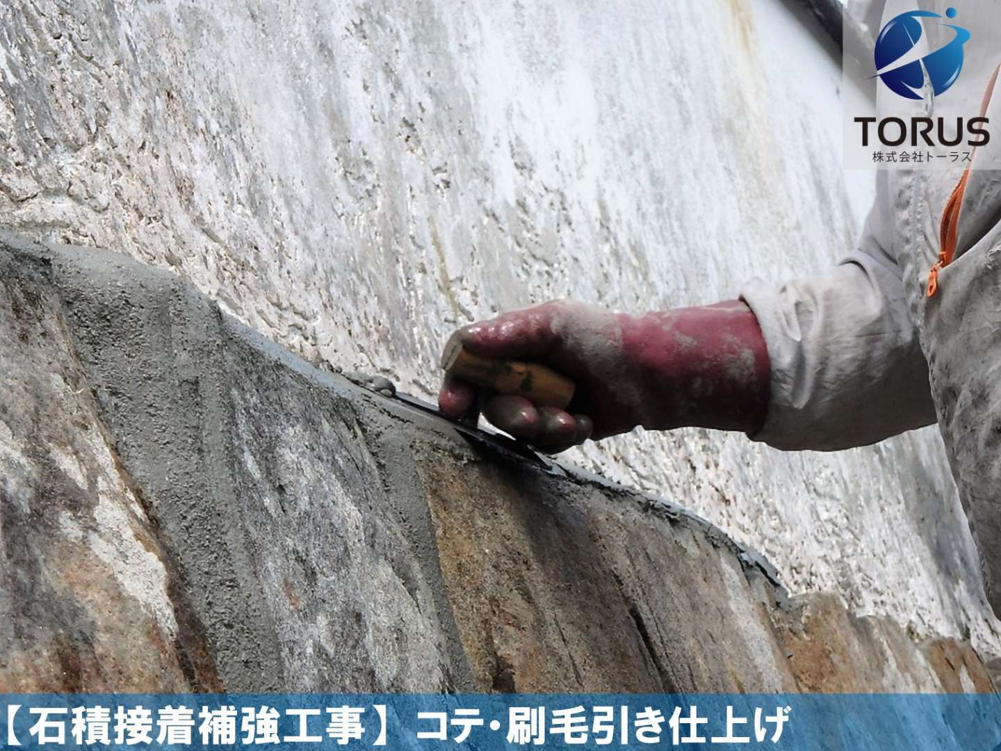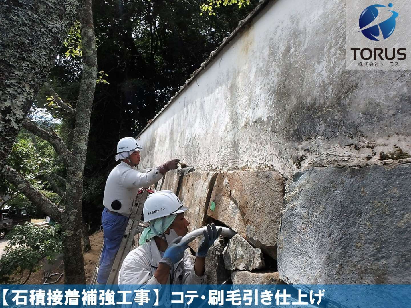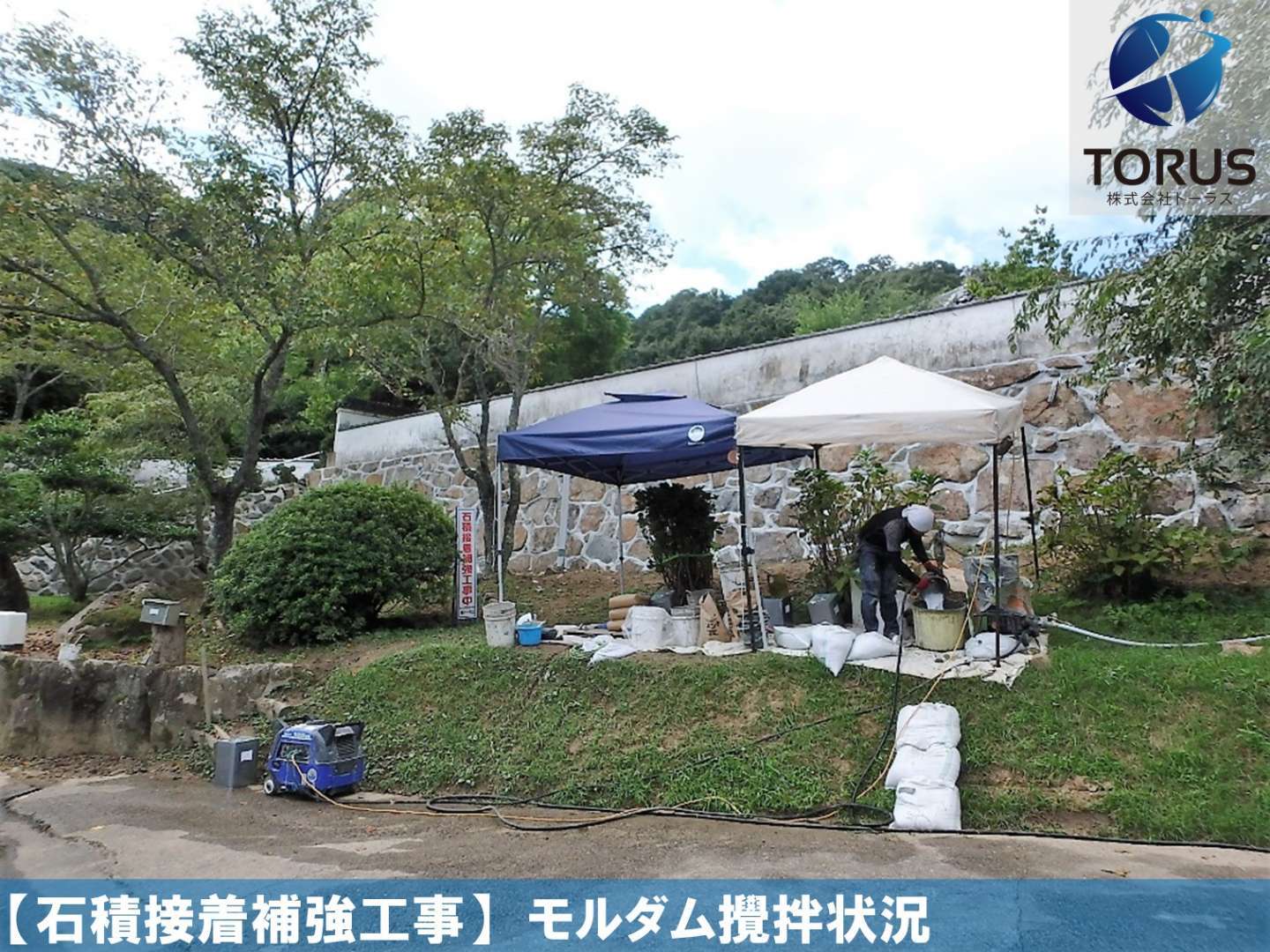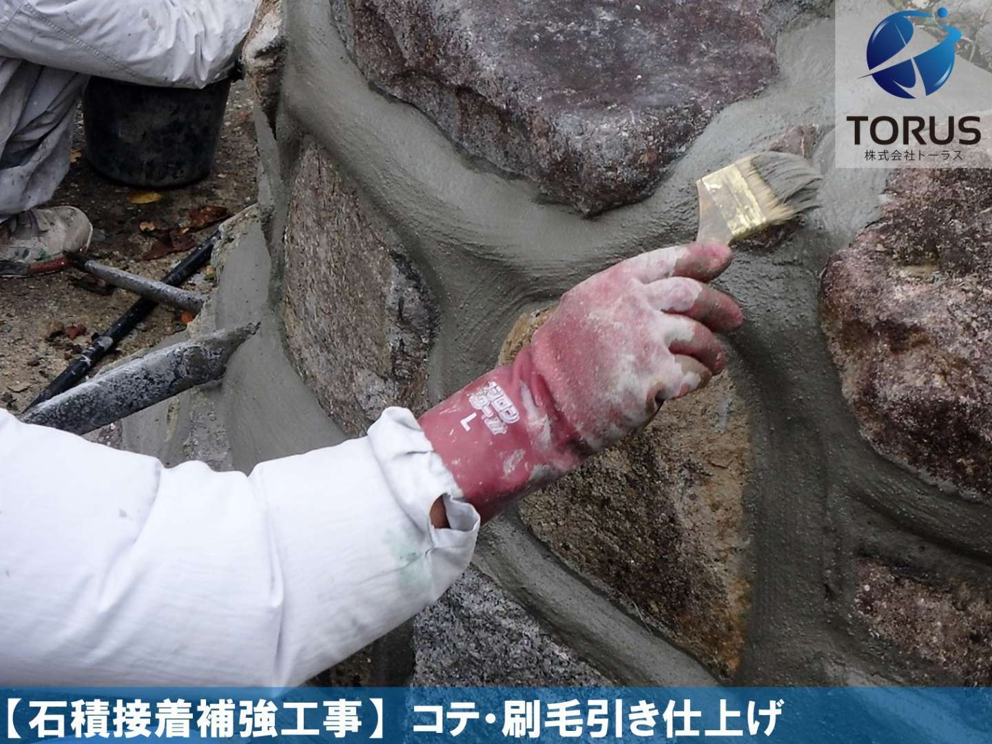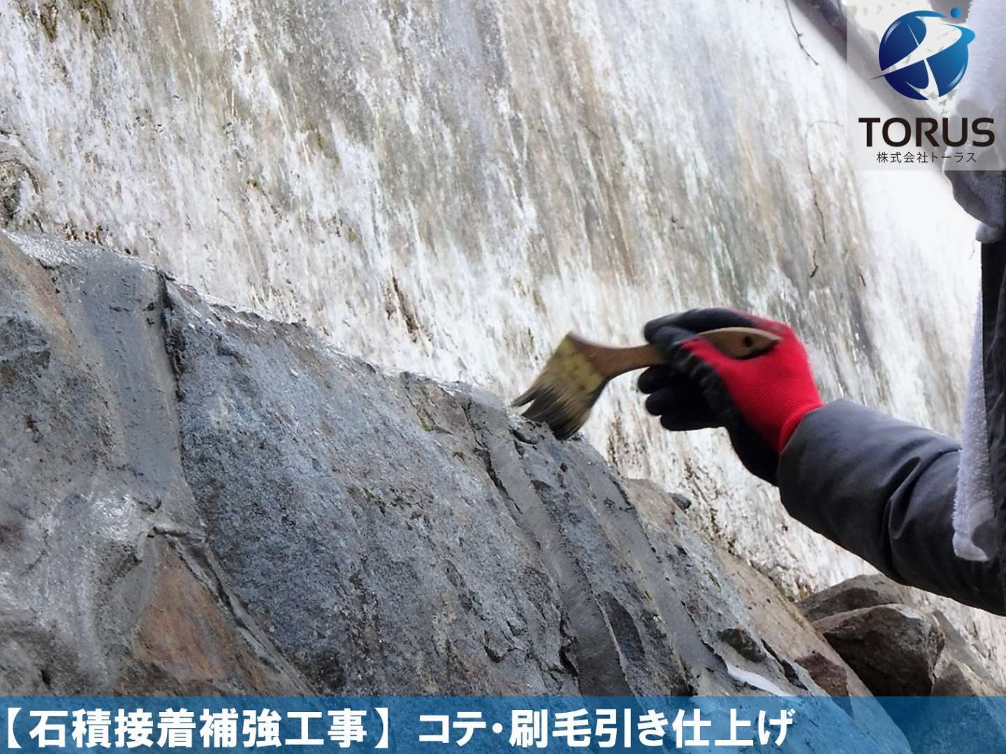 株式会社トーラスでは石積の接着補強工事を行っています。