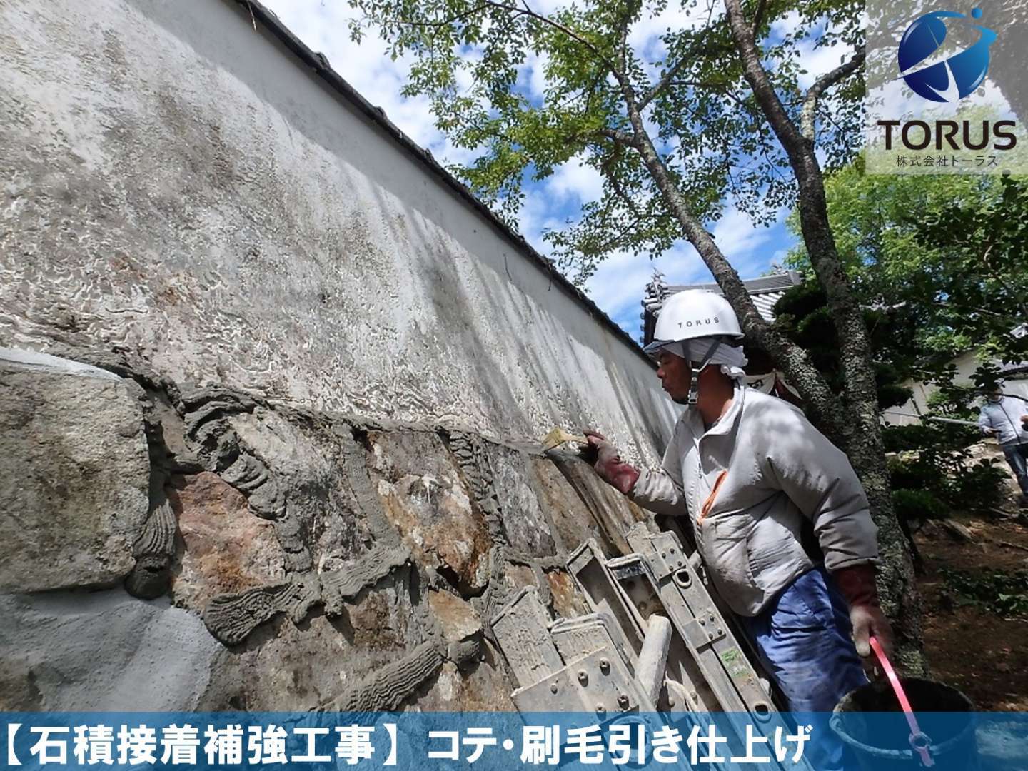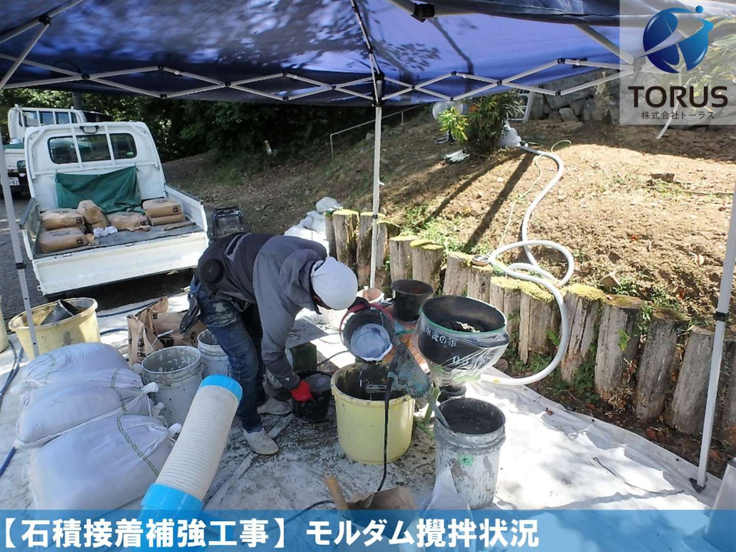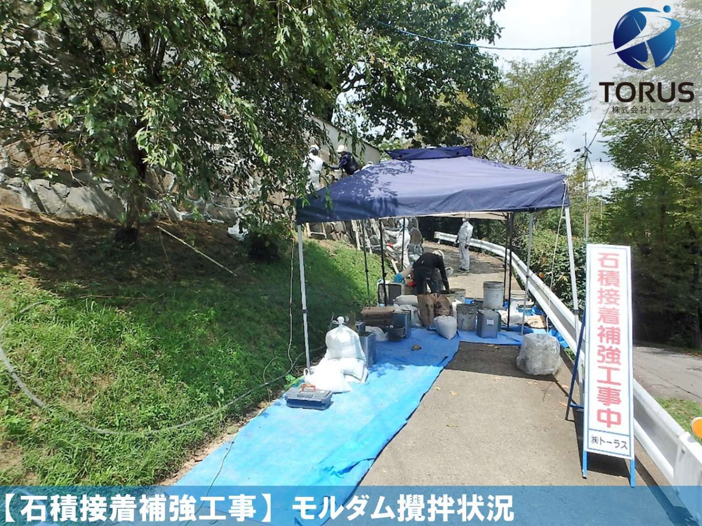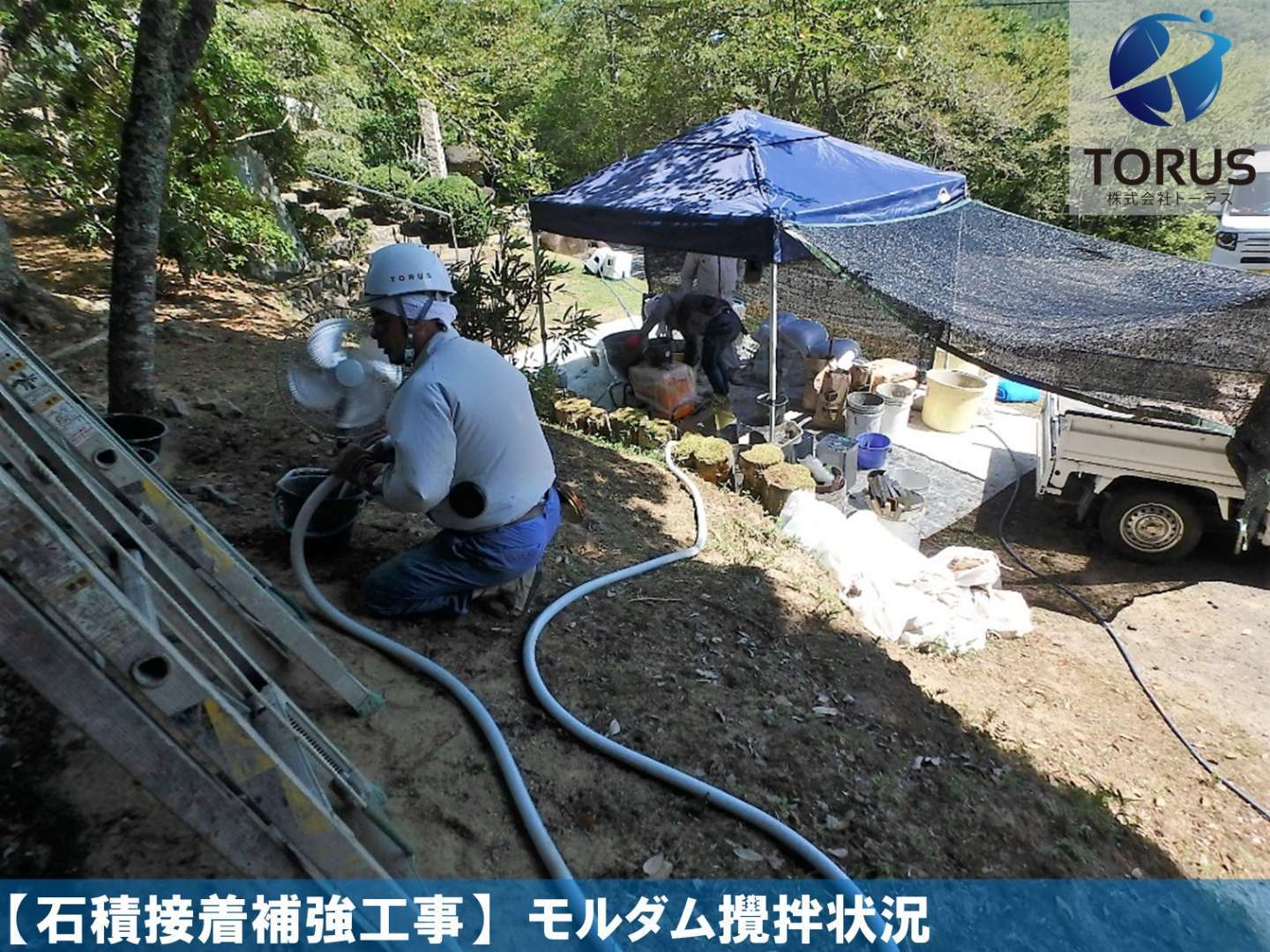 株式会社トーラスでは石積の接着補強工事を行っています。