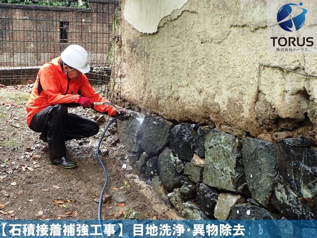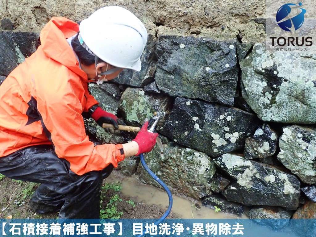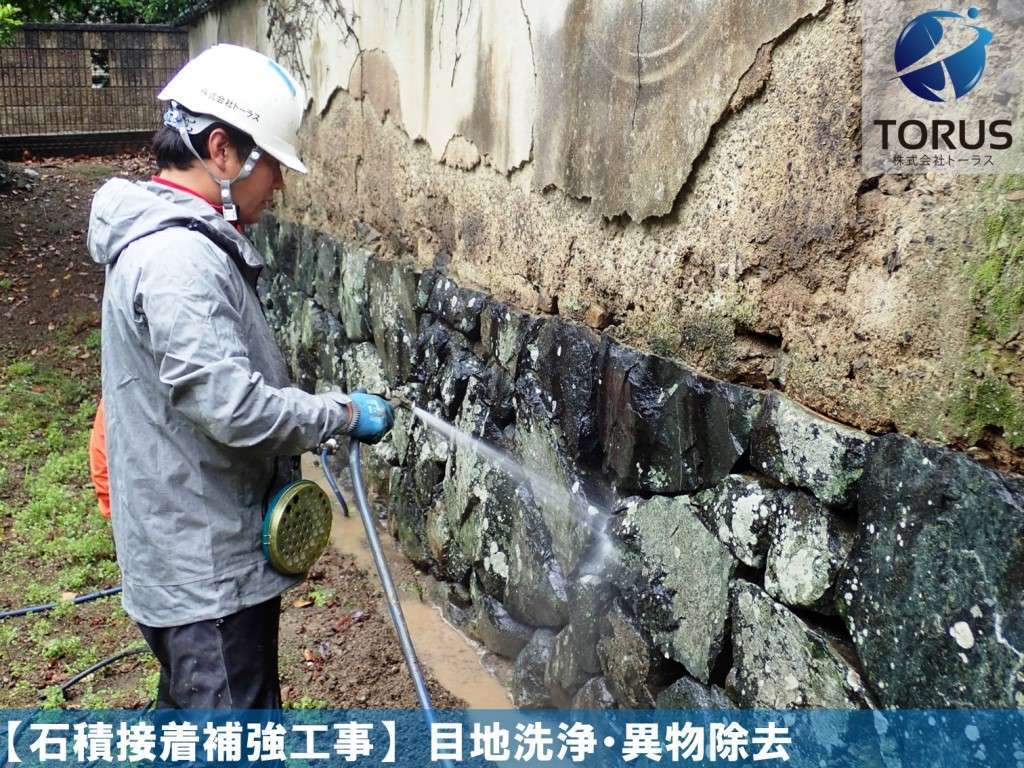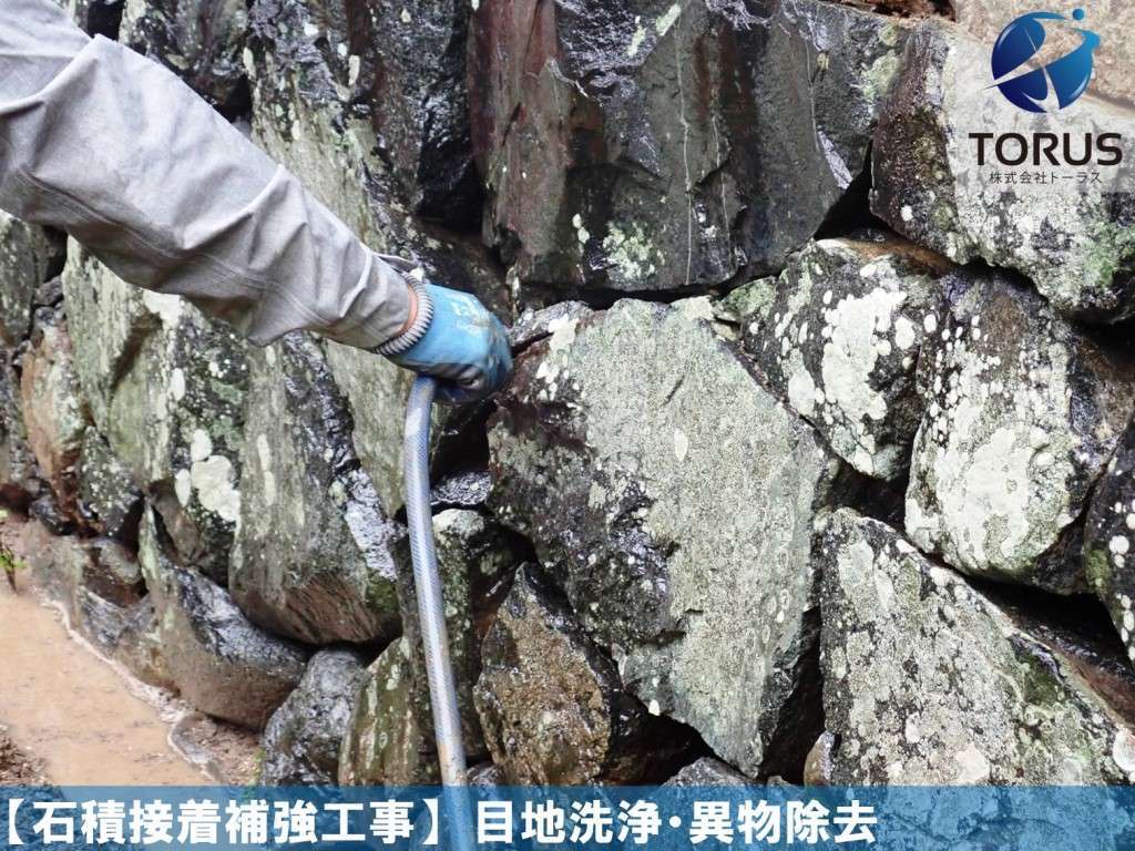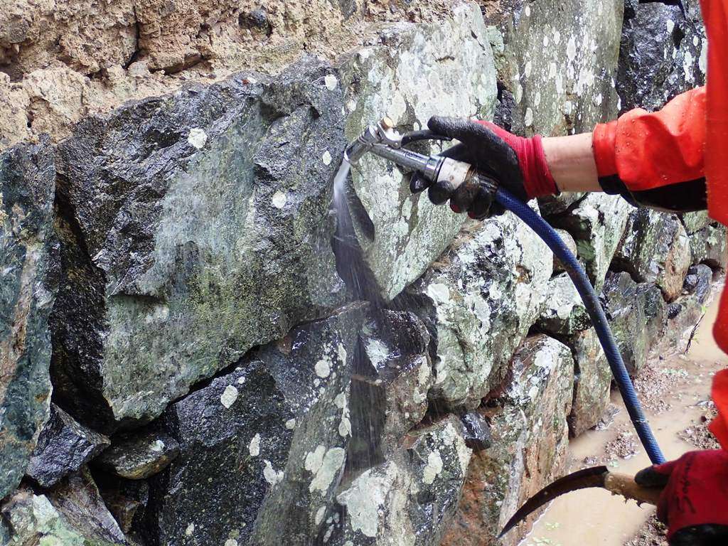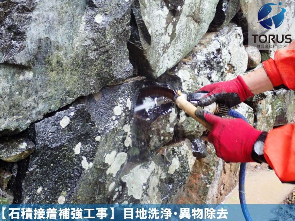 目地間・石積内部を洗浄し異物を除去します。