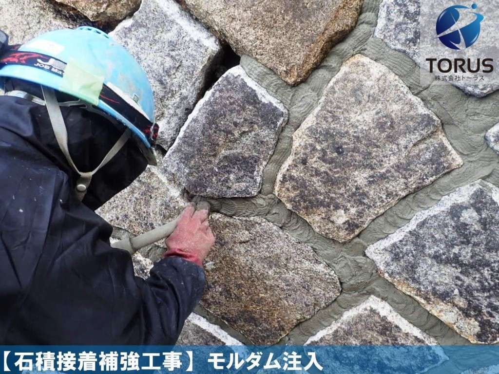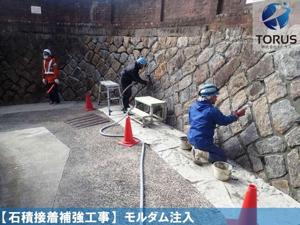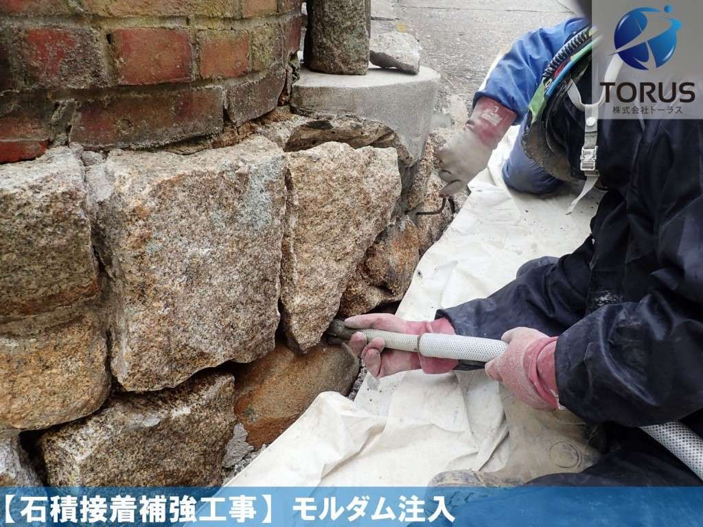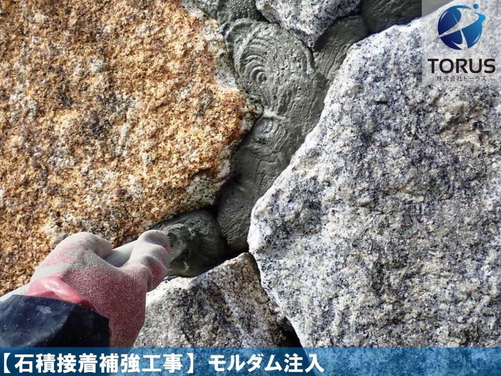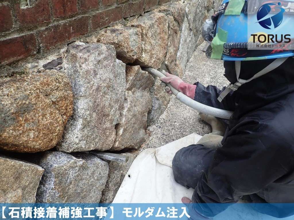 セメント:砂:専用接着剤(モルダムGハイパー)を配合した充填剤をモルタルポンプにて注入します。