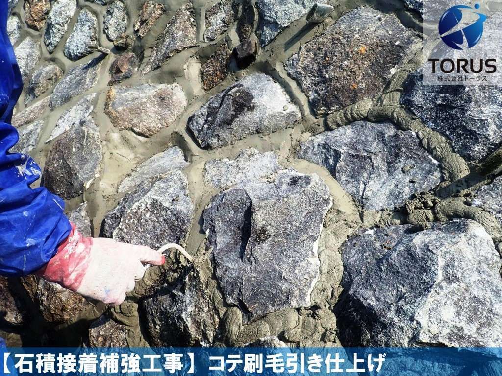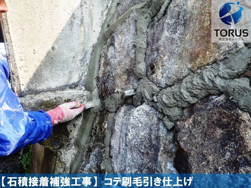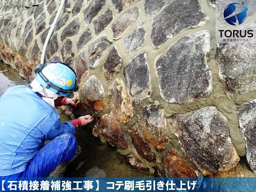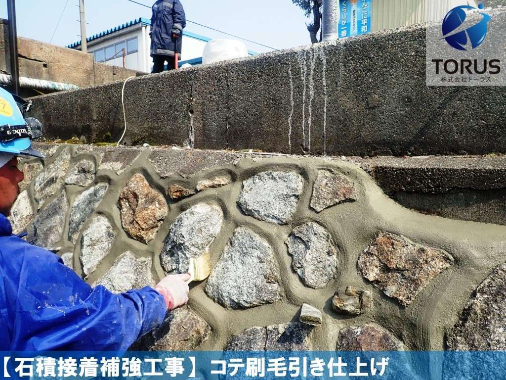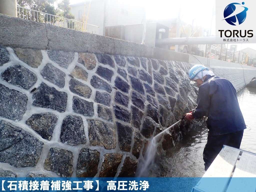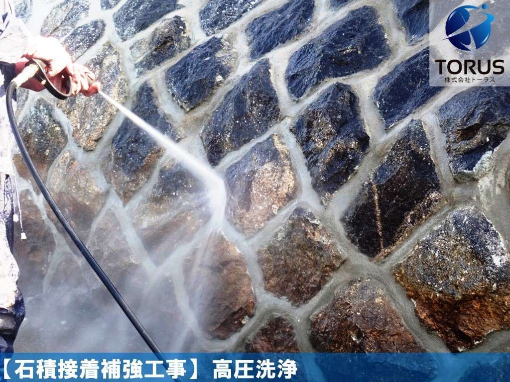 石積表面の汚れを除去します。