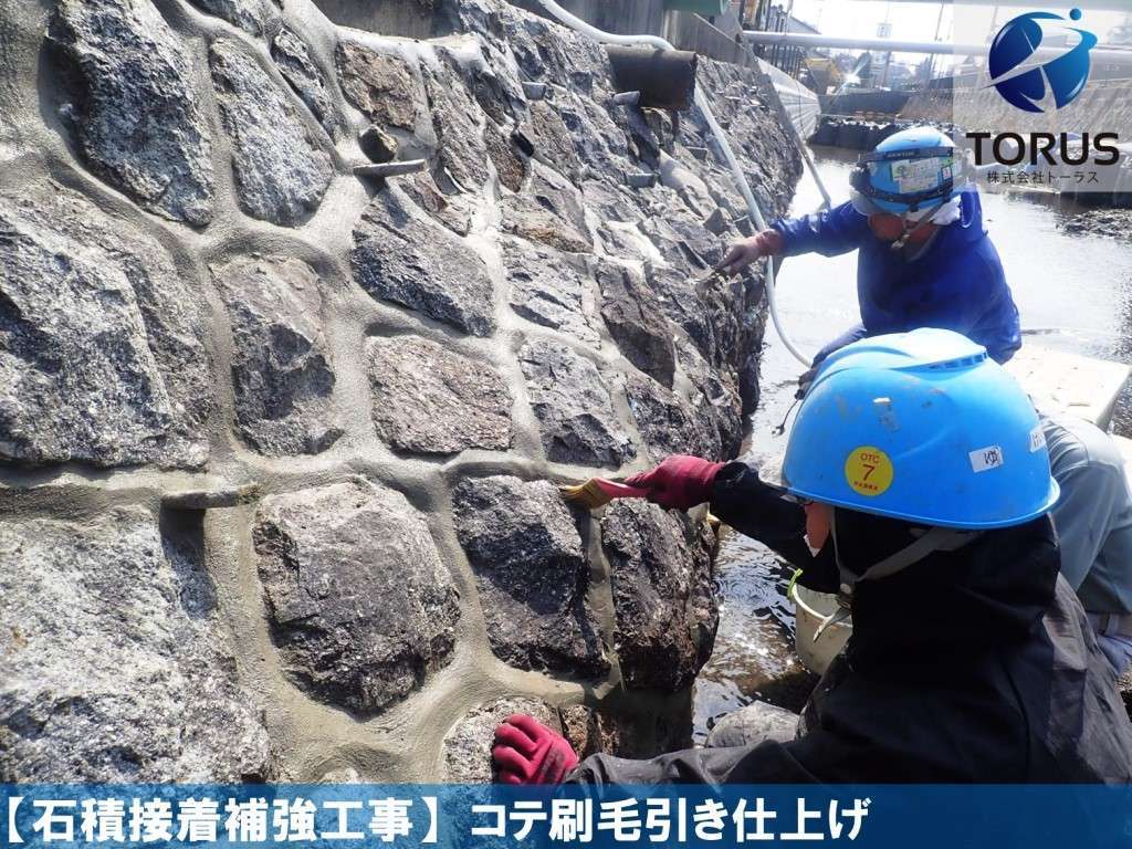 コテ・刷毛引きにて表面の仕上げを行います。