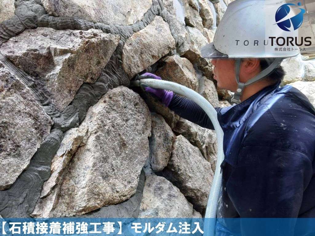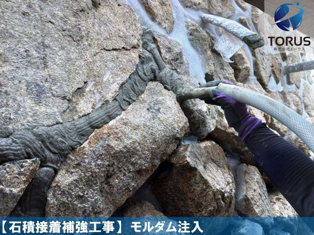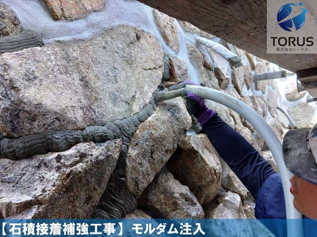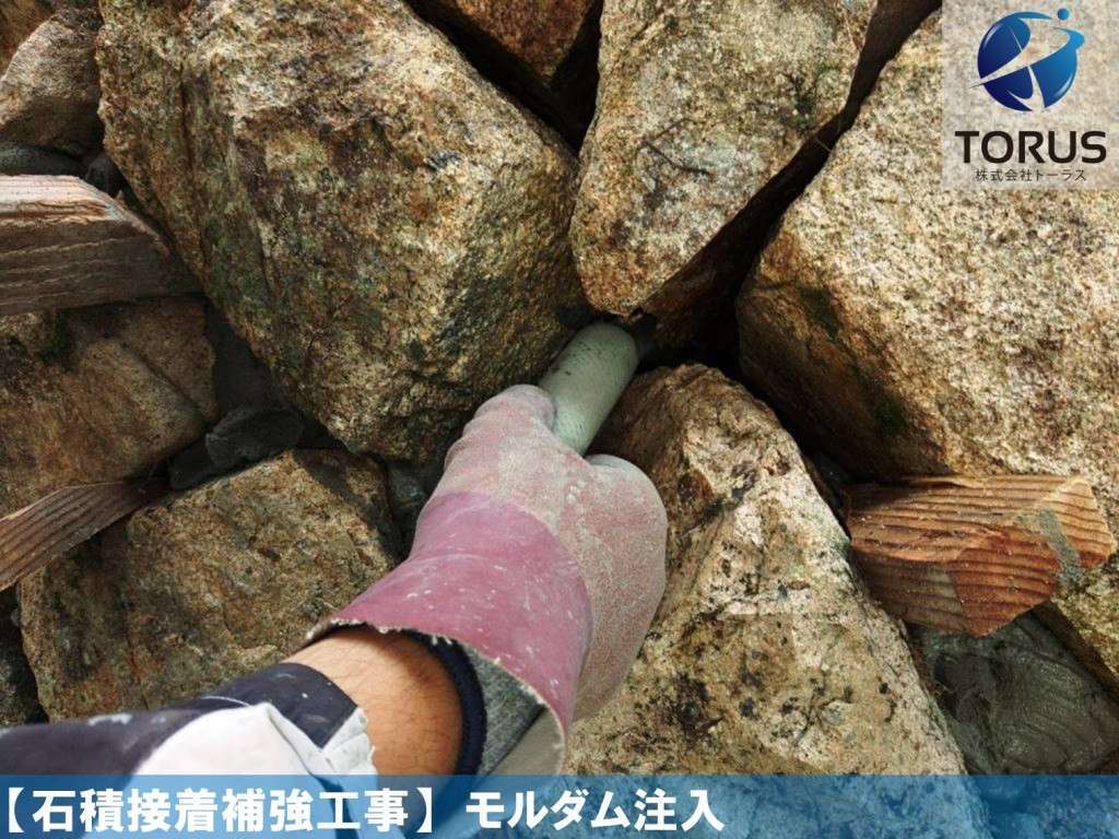セメント:砂:専用接着剤(モルダムGハイパー)を配合した充填剤をモルタルポンプにて注入します。