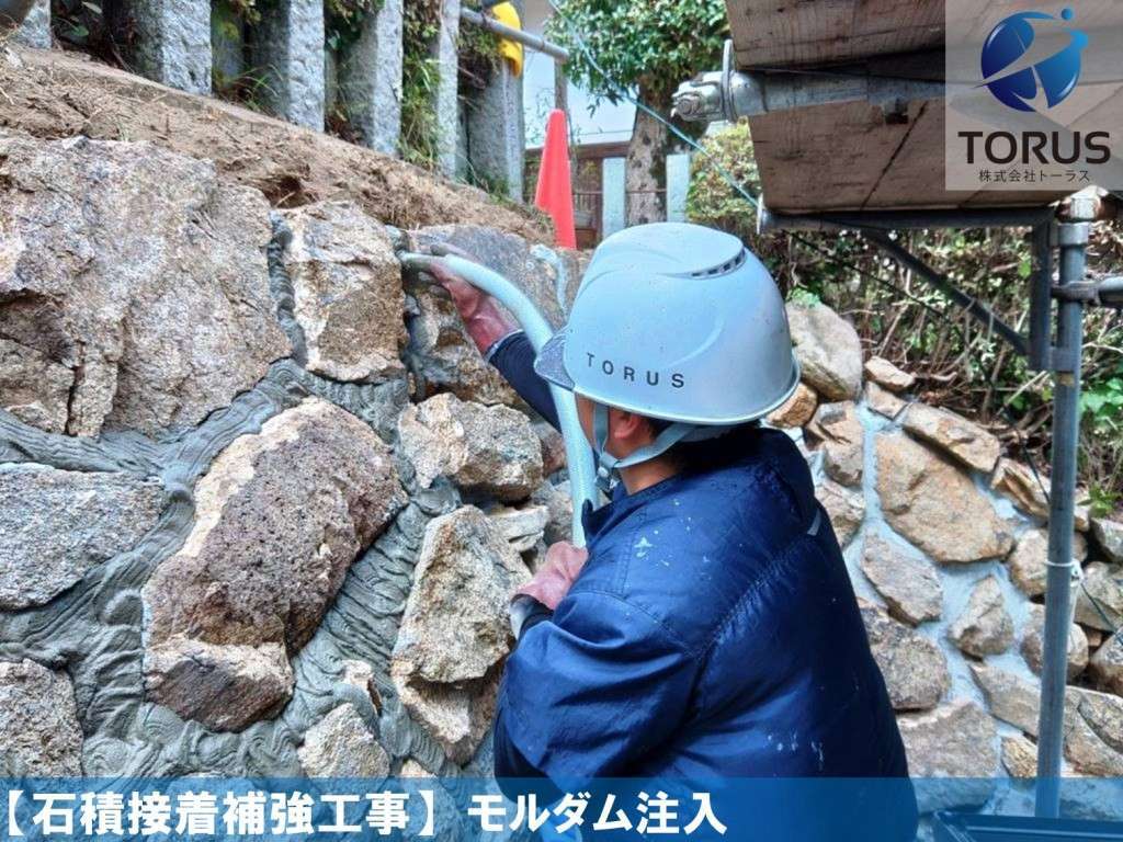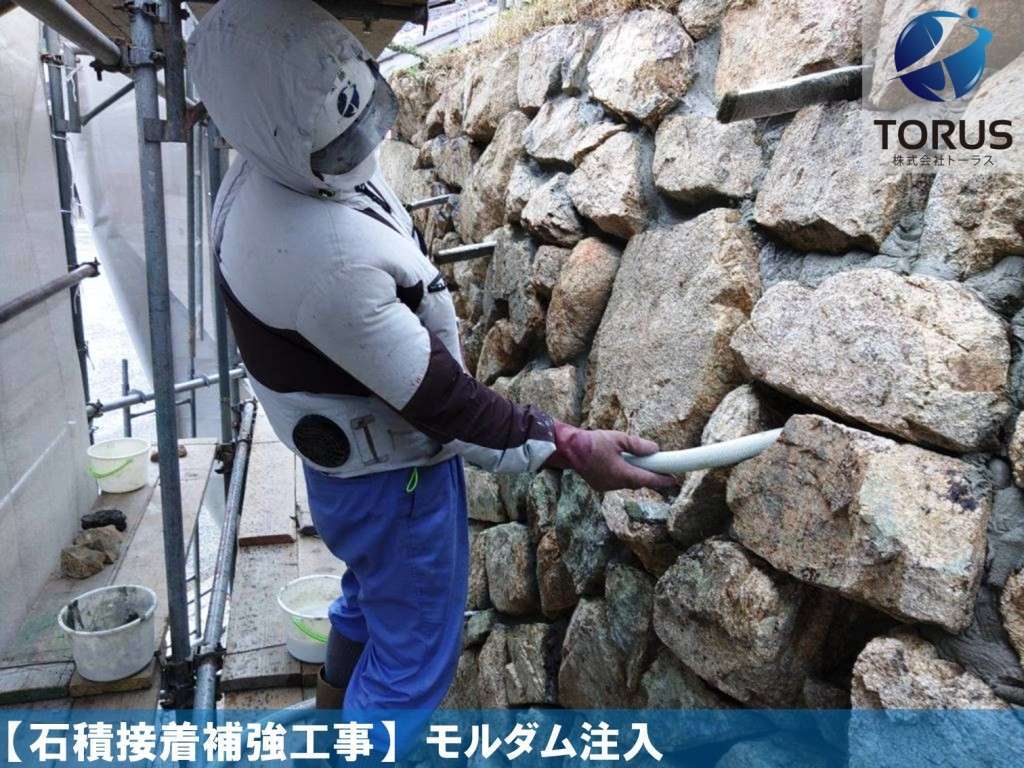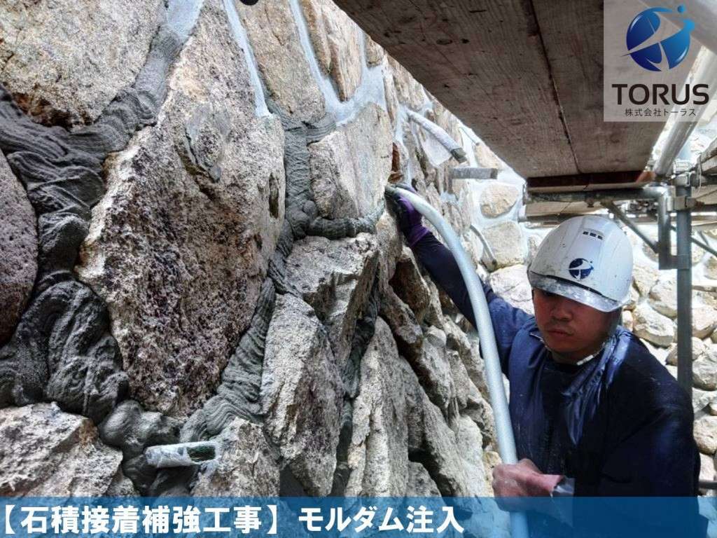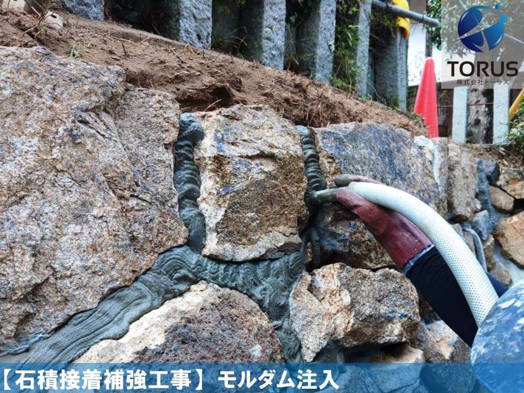 セメント:砂:専用接着剤(モルダムGハイパー)を配合した充填剤をモルタルポンプにて注入します。