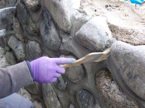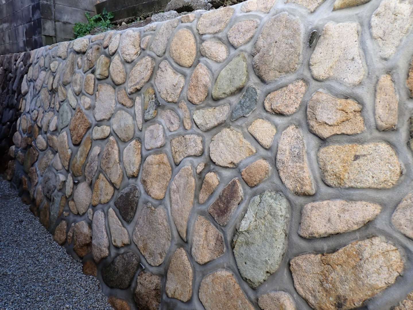 石と石(ブロック)の間をコンクリートで埋めて固定する石積み擁壁を「練石積み擁壁」と呼び、このタイプがポピュラーです。目地入れや裏込めを行う手間がかかるので、後述する「空石積み」よりも高額になります。