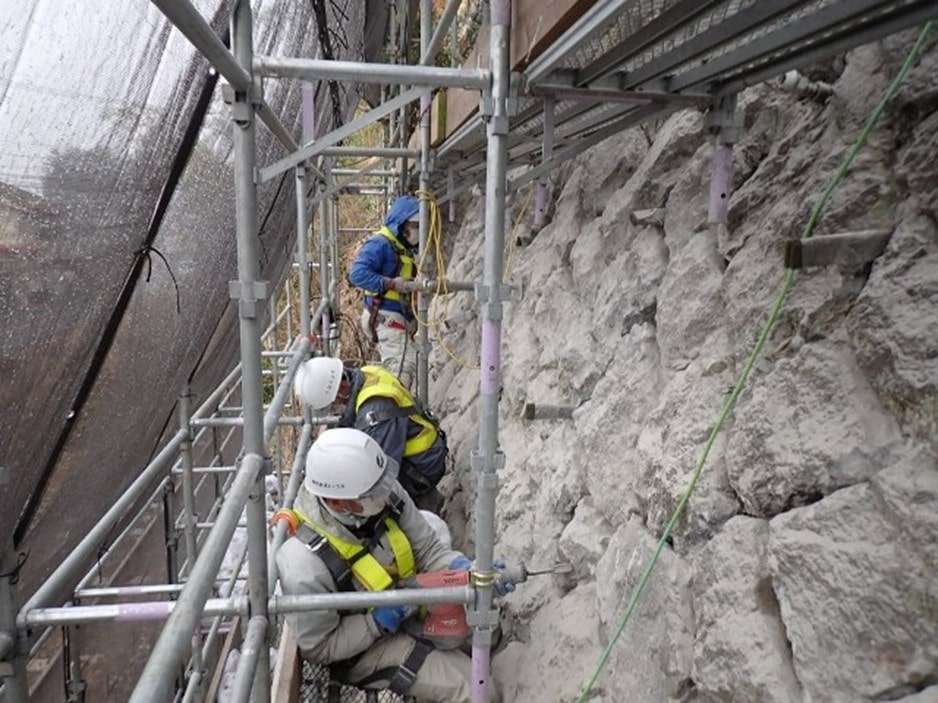 とりわけ特許工法である「モルダム工法」により、従来の石積み補強(石垣補強)工事のデメリットであった、「接着力の弱さ」「内部浸水による水圧上昇の倒壊に対応できない」など、これらの弱点を補った高品質な補強工事を提供しています。