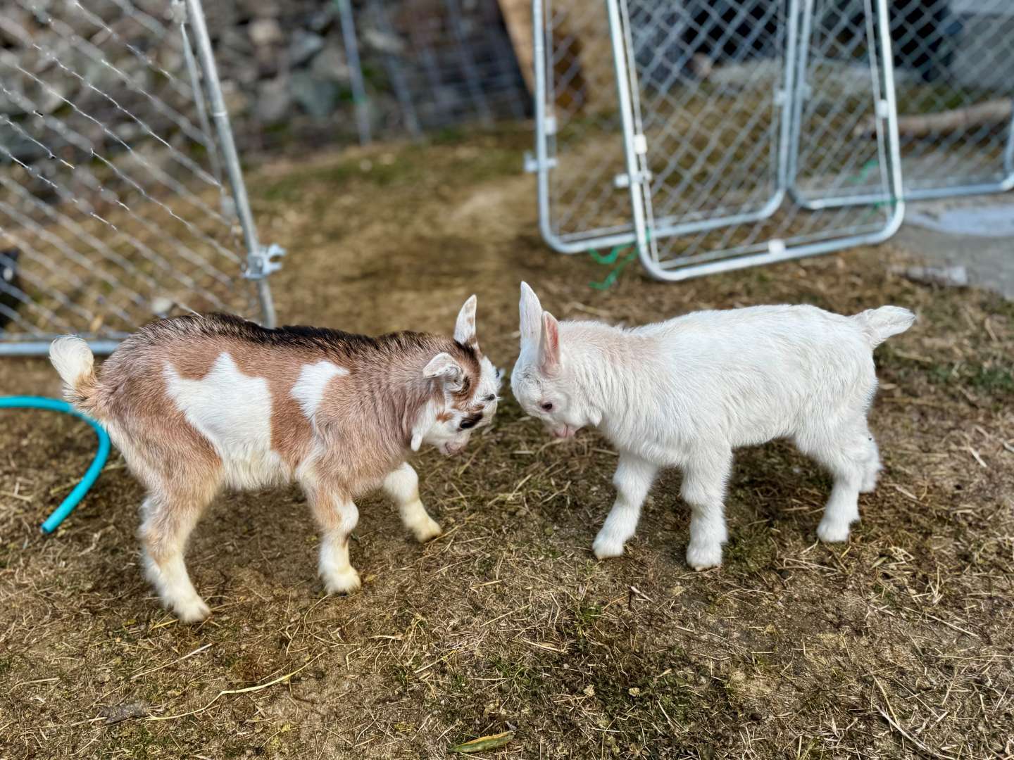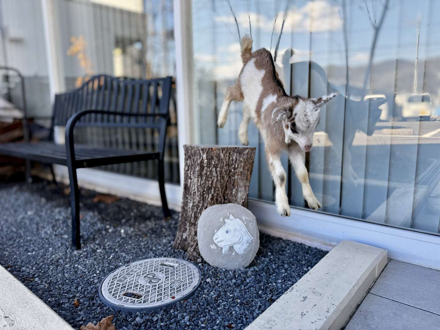 岡山営業所に母ヤギから授乳できない小ヤギが2頭やってまいりました。