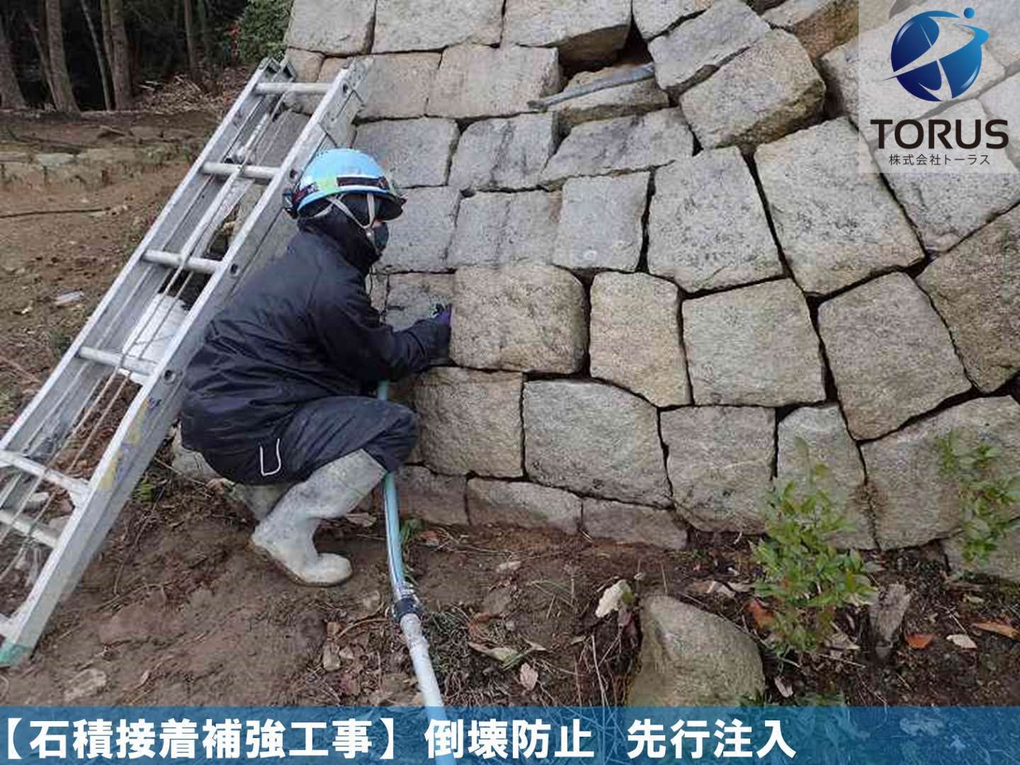 今回は墓地の石積みの接着補強工事を行った事例を御紹介致します。