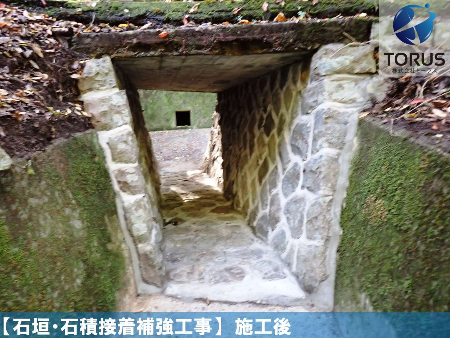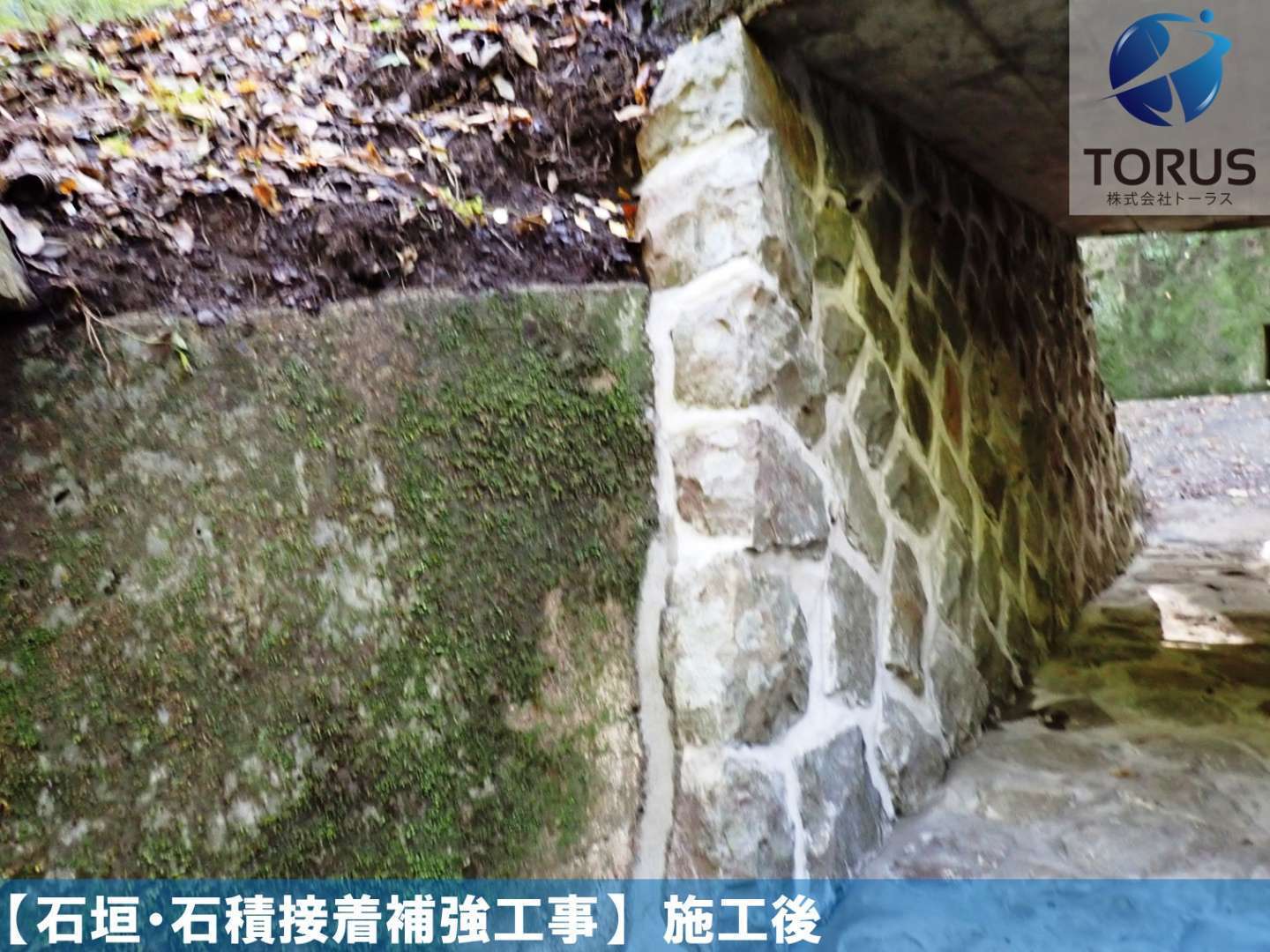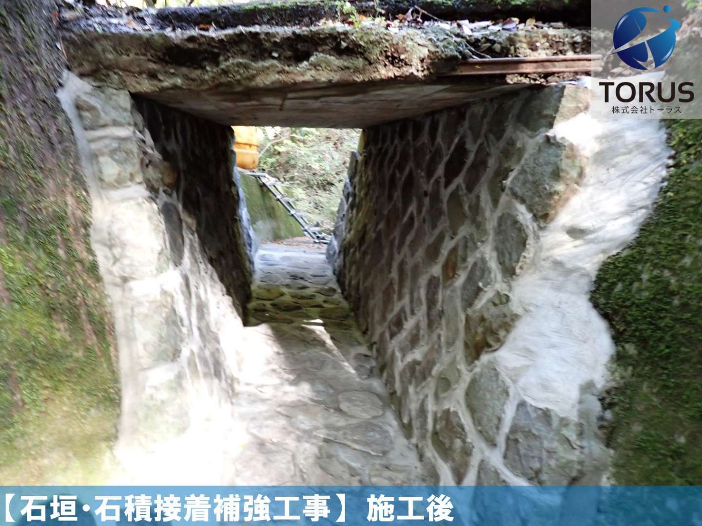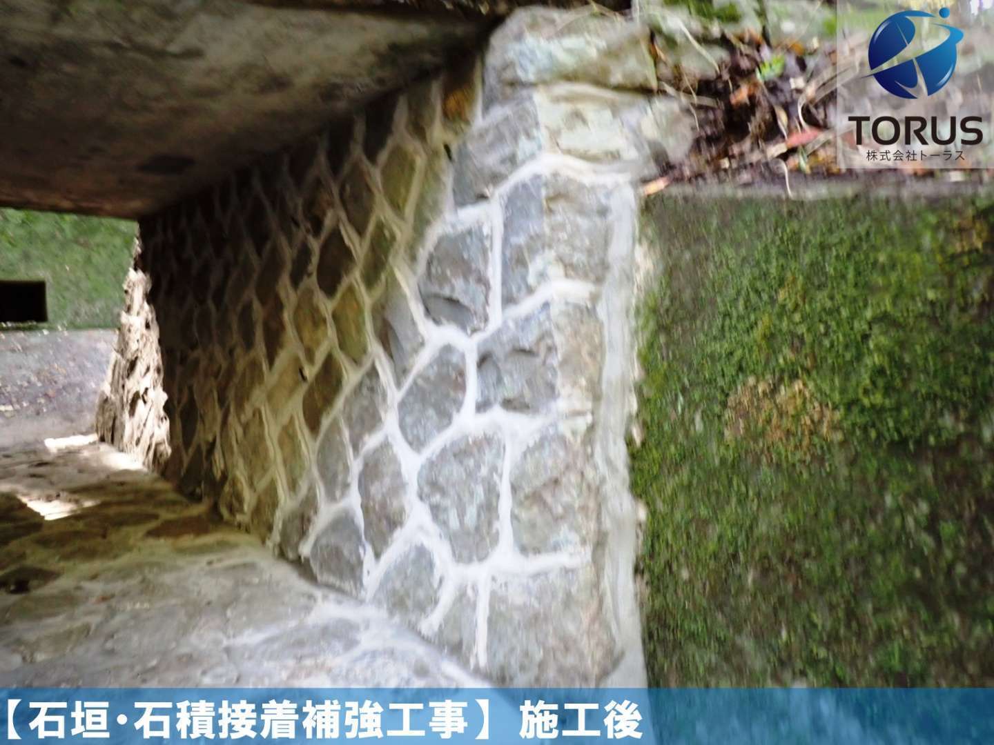 【信頼と実績のモルダム工法】 特許工法(特許第5686446号) NETIS登録番号(QS-220012-A) 尾道東高校にて一部の石積…
